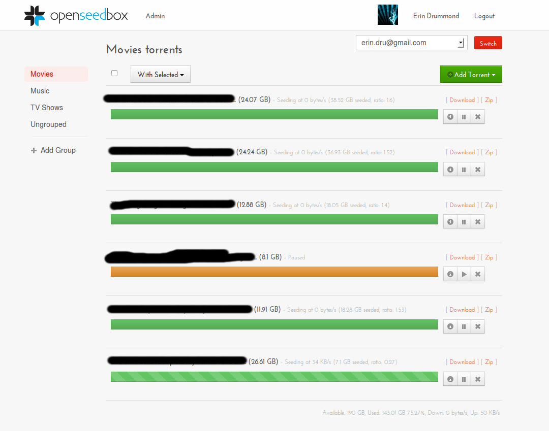 OpenSeedbox is licensed under the GNU General Public License v3. I originally created it for my flatemates and myself to use, but I decided to release it as open source because I thought that other people might benefit from it too.